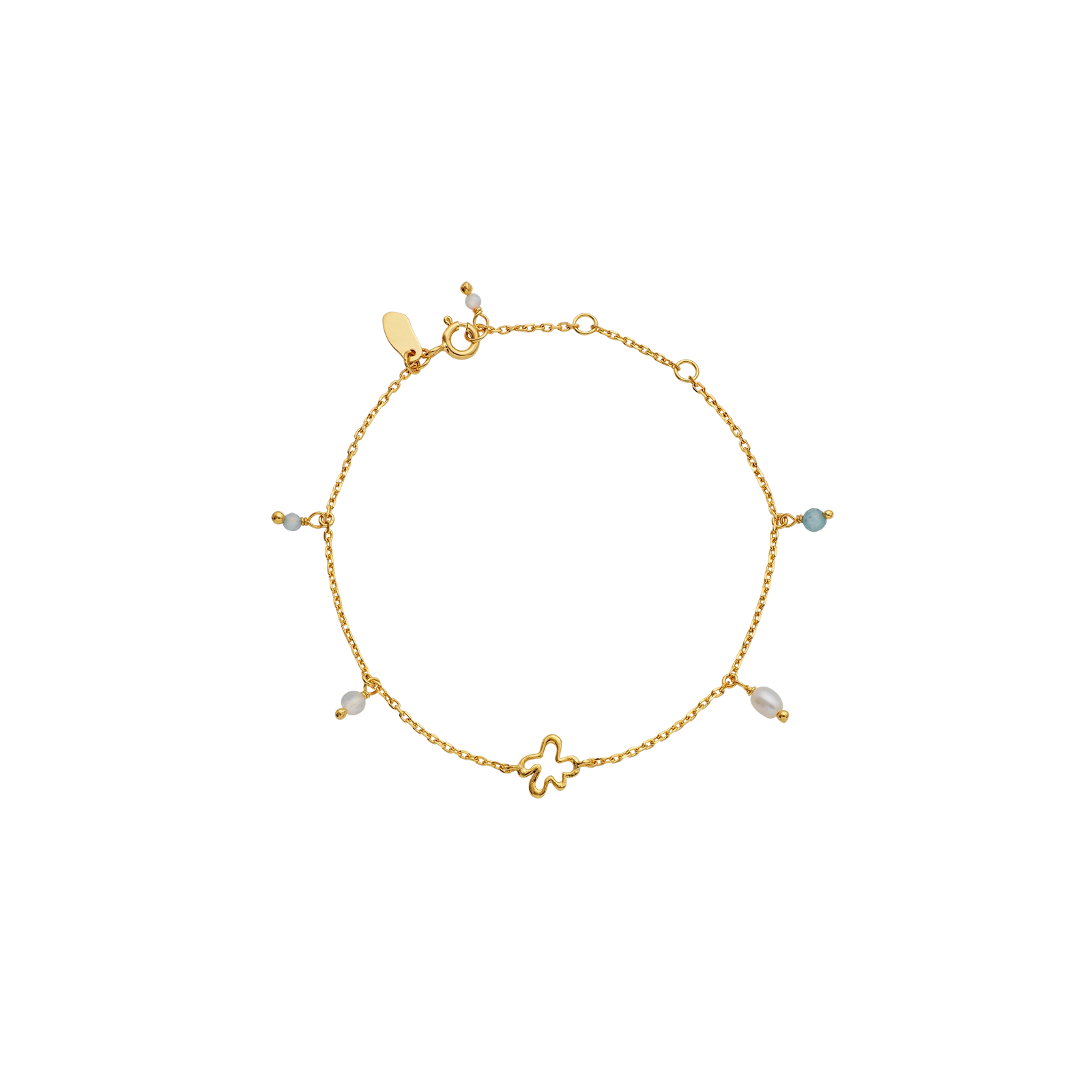 I armbåndet løber IGENs swirl organisk gennem Maanestens univers af ædelsten, som falder langs kæden. Ædelstenene består af ferskvandsperle, opal, regnbue månesten og akvamarin, som er forbundet med månen og en rolig feminin energi.