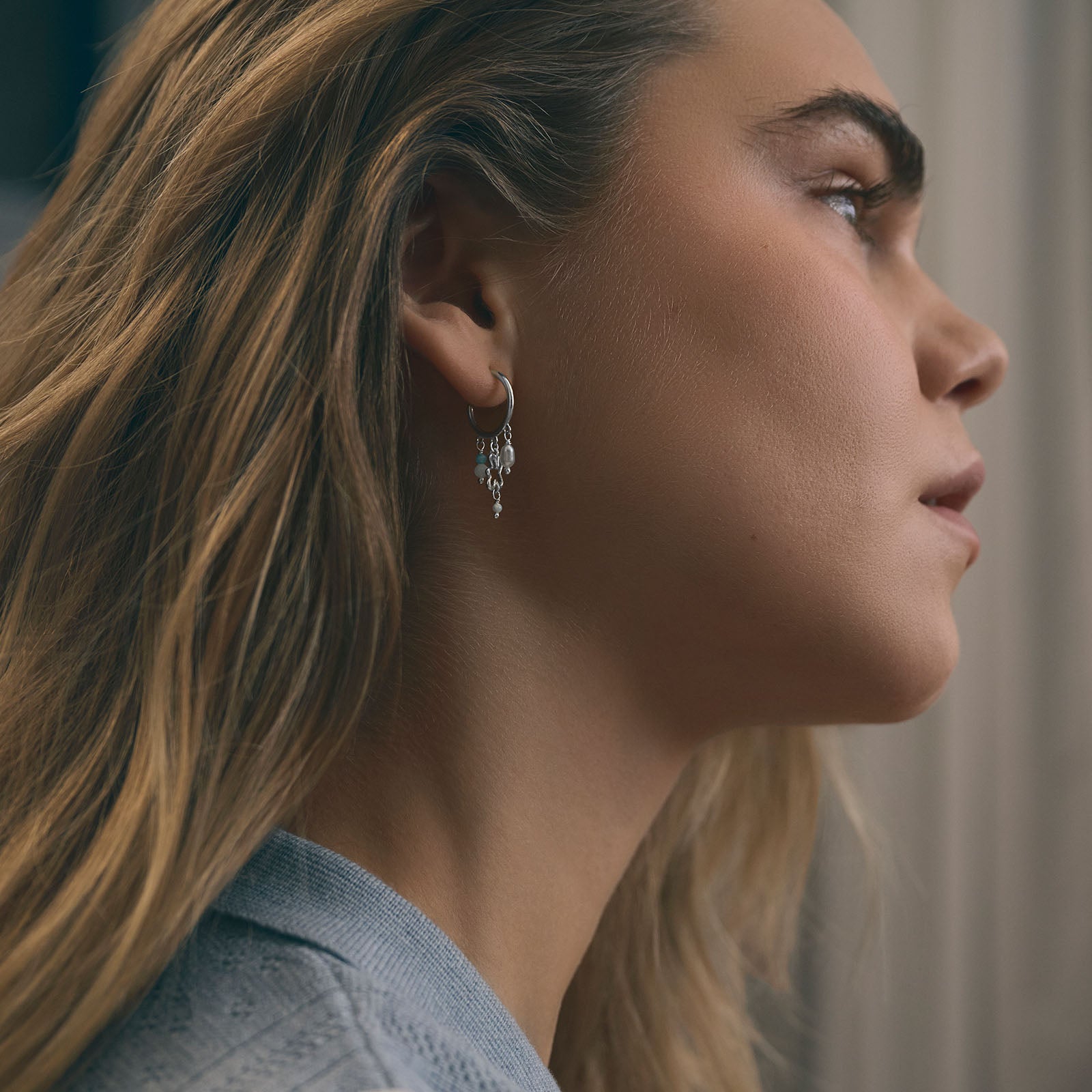 Designet forener IGENs swirl med Maanestens drømmende univers, hvor ferskvandsperle, opal, akvamarin og regnbue månesten er udvalgt for deres lyse nuancer og deres forbindelse til måne og en rolig feminin energi.